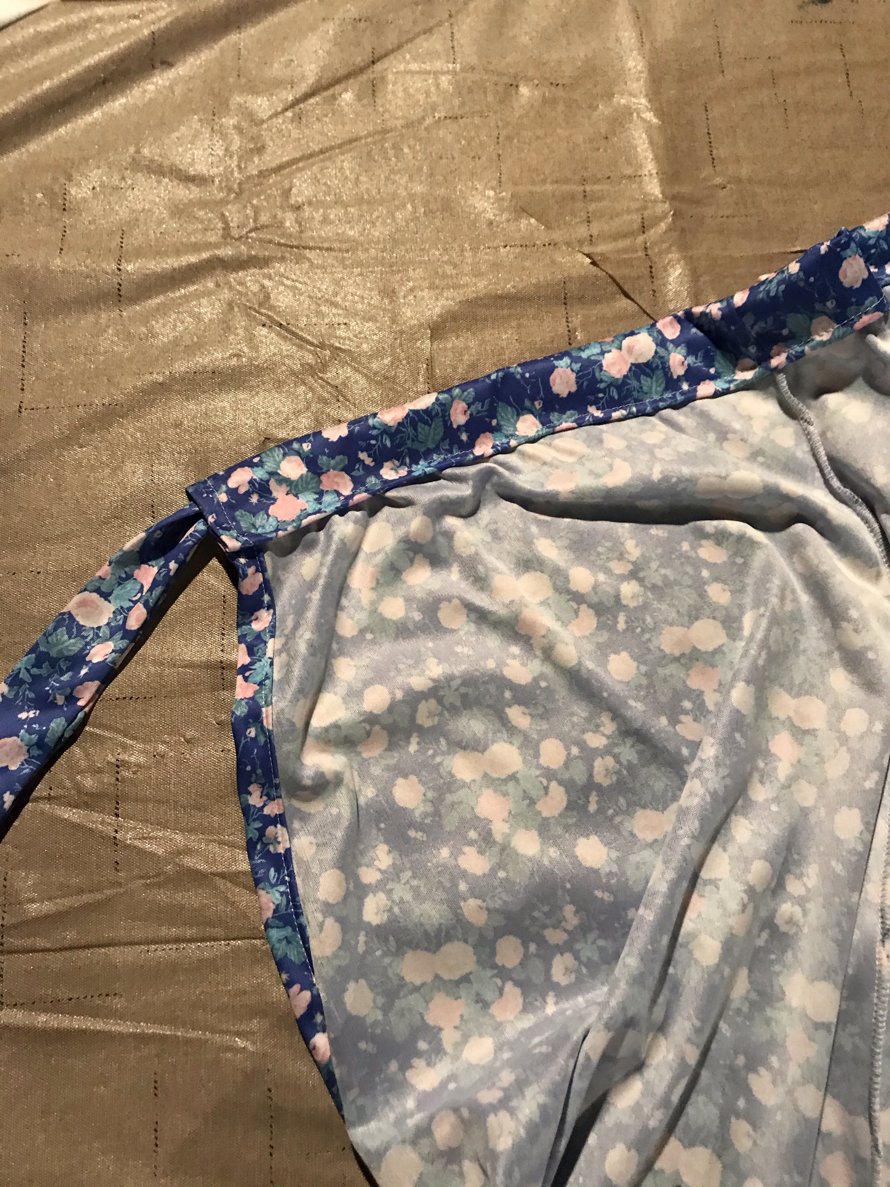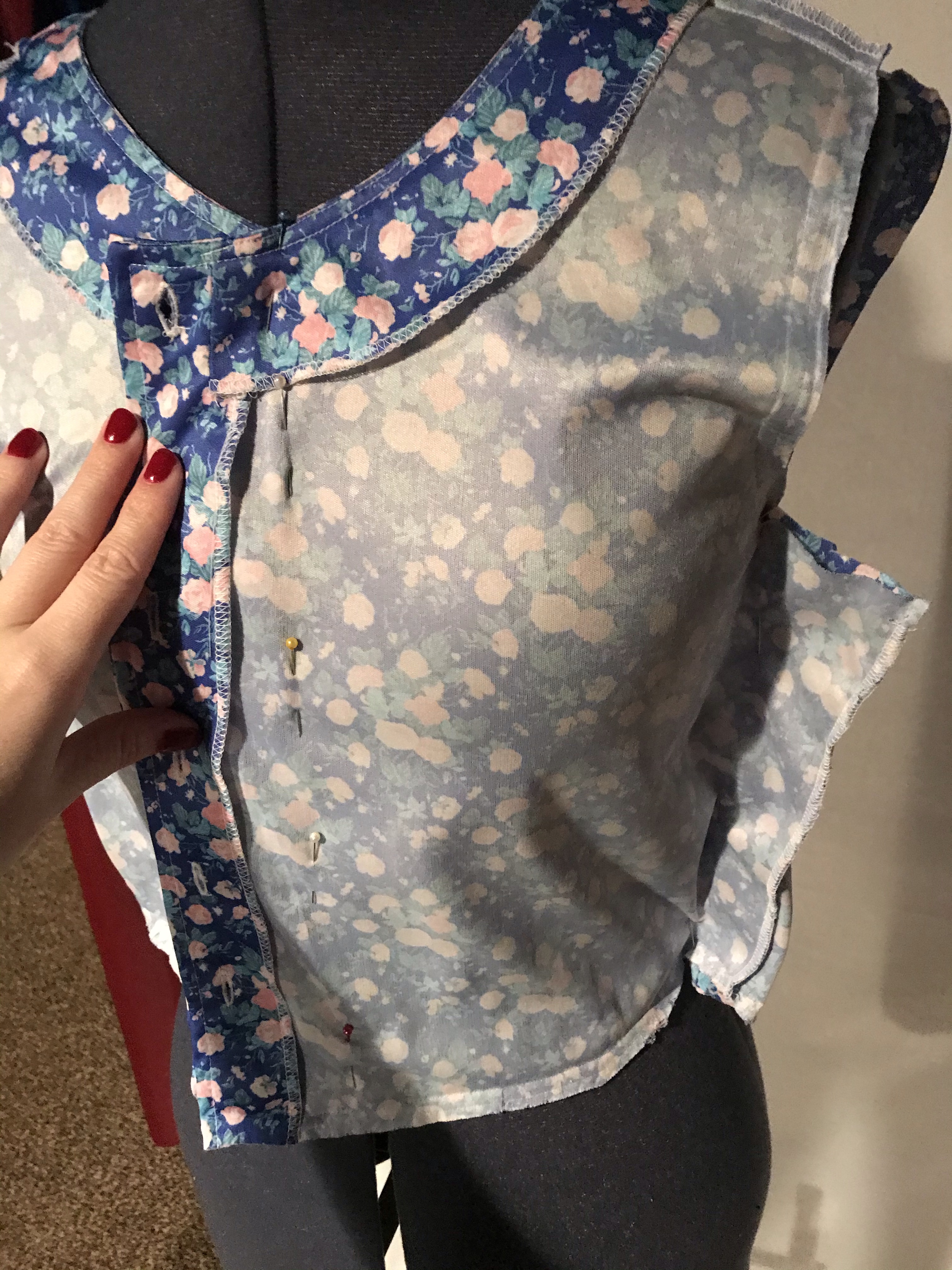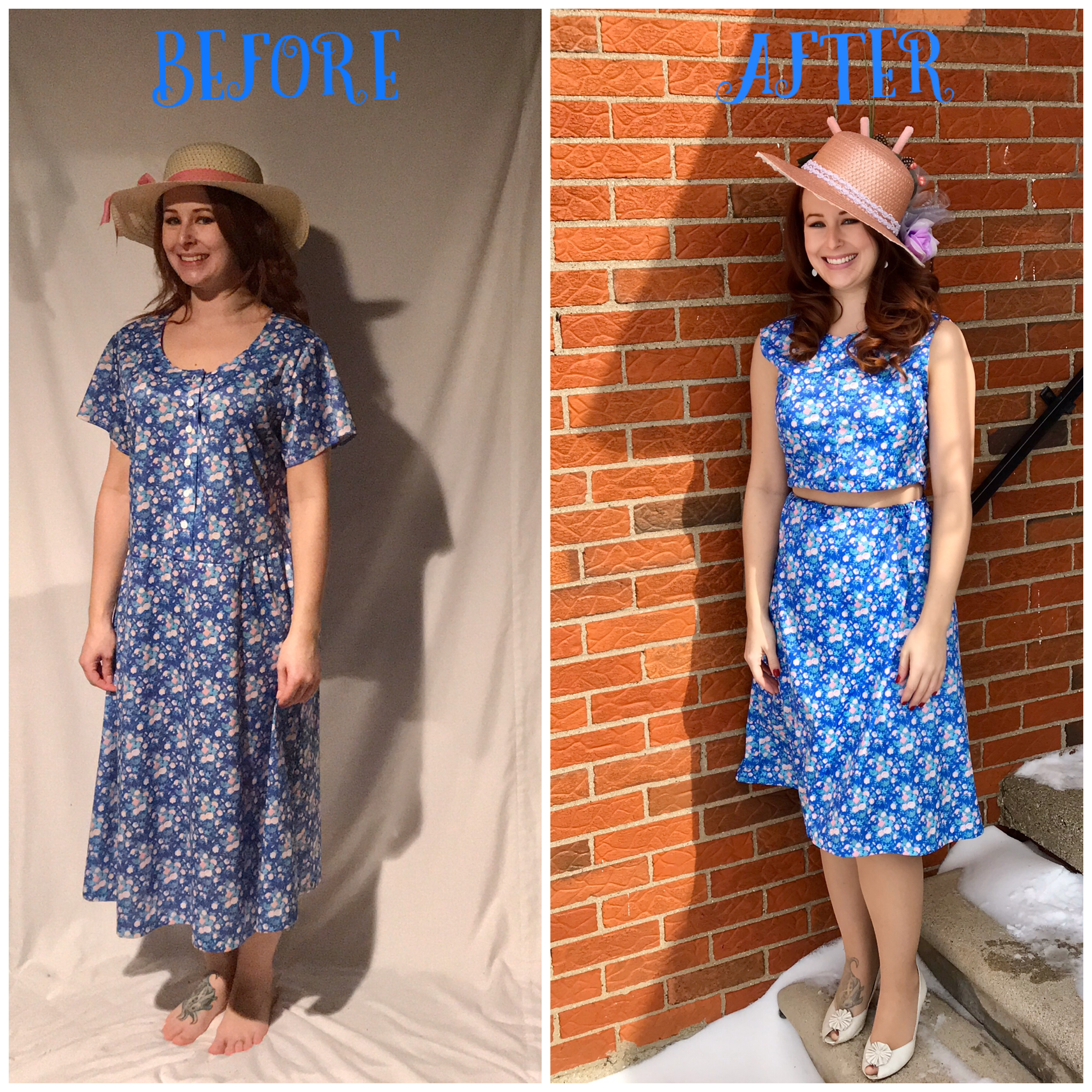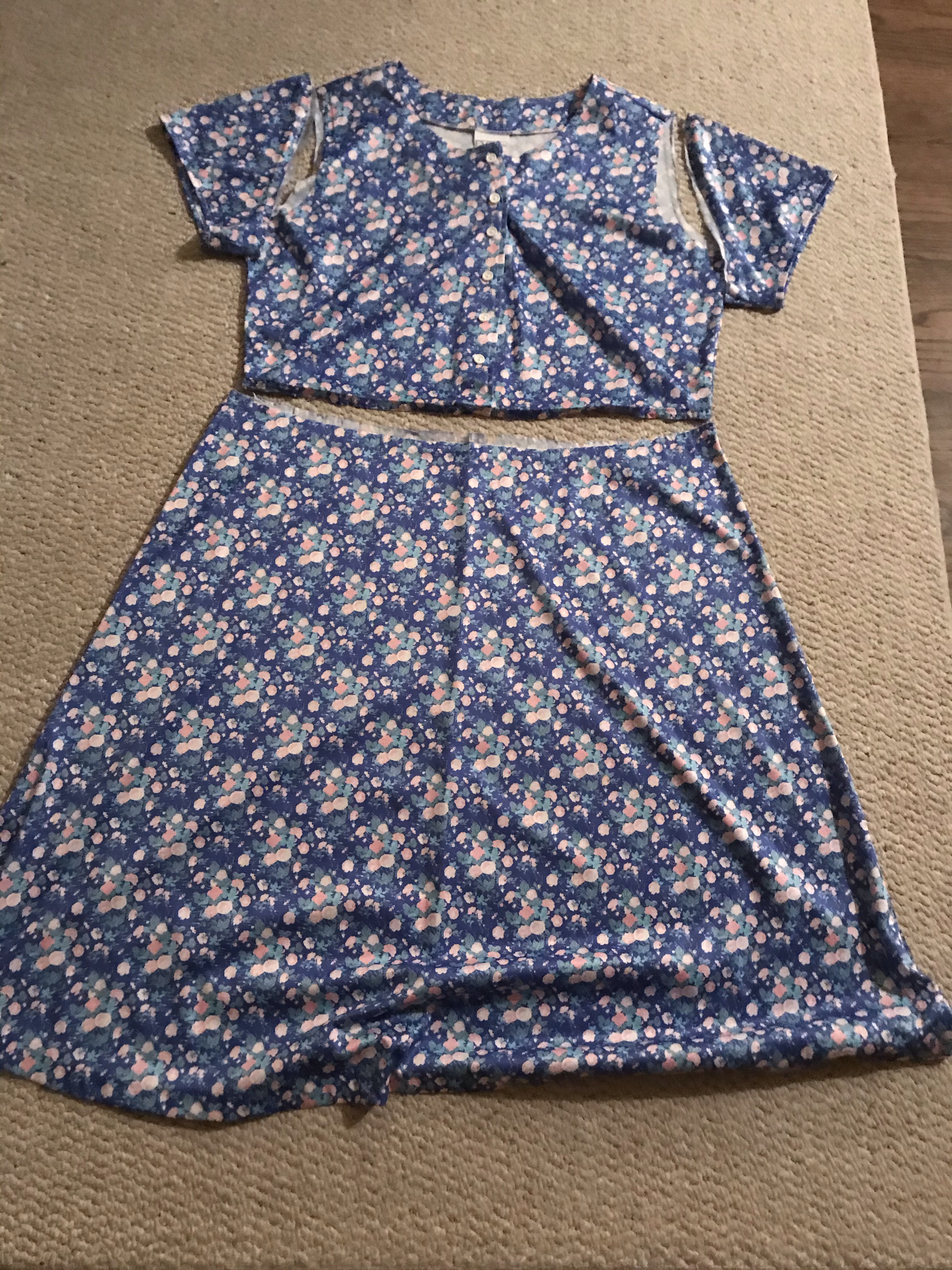 The front of the dress had buttons, which I removed and stitched together the front seams. Then took the sides in and cropped it short (bold move for myself)!