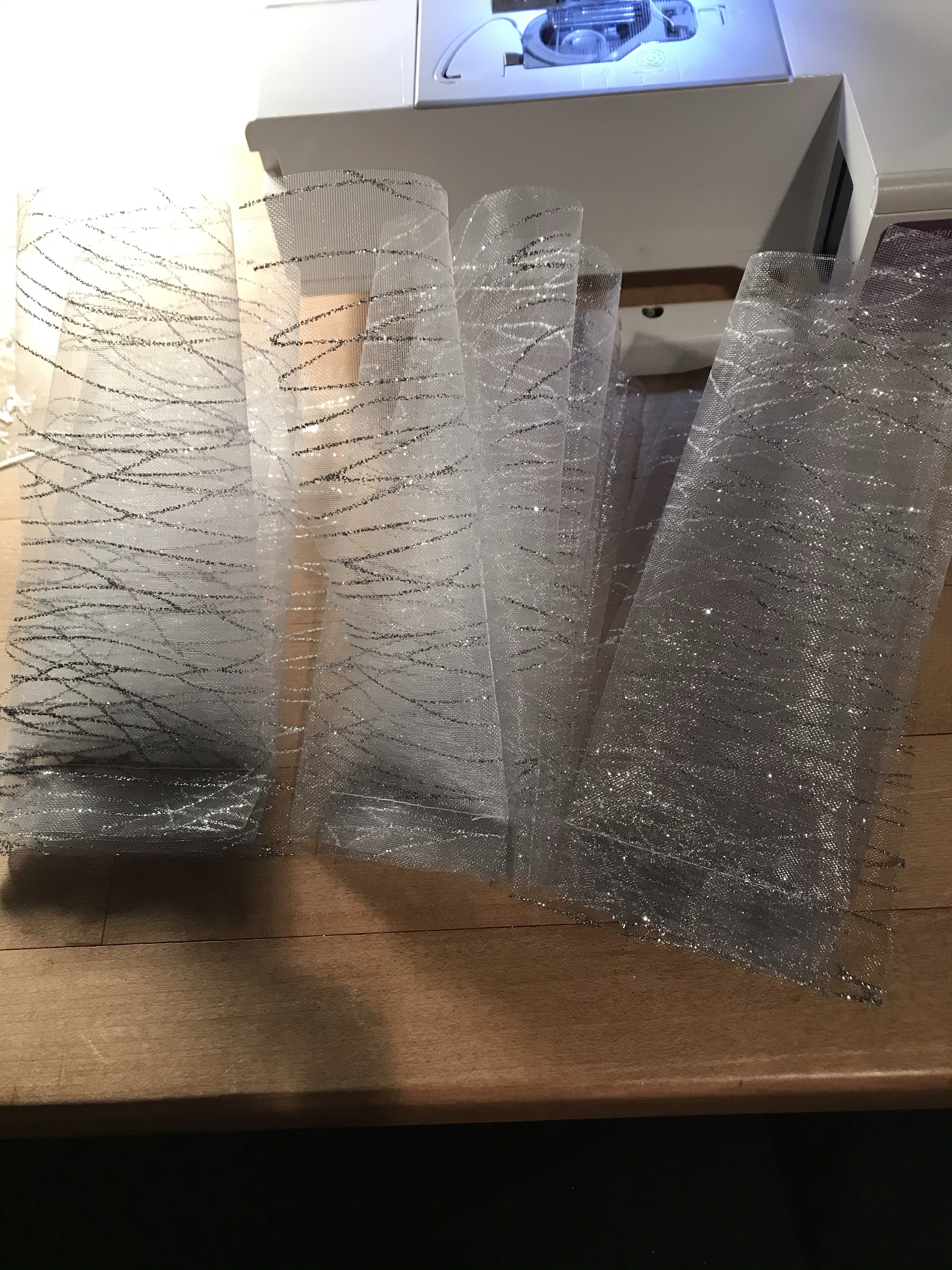 I cut 3 long pieces of this silver sparkle tulle and folded them accordion style and stitched the ends together.