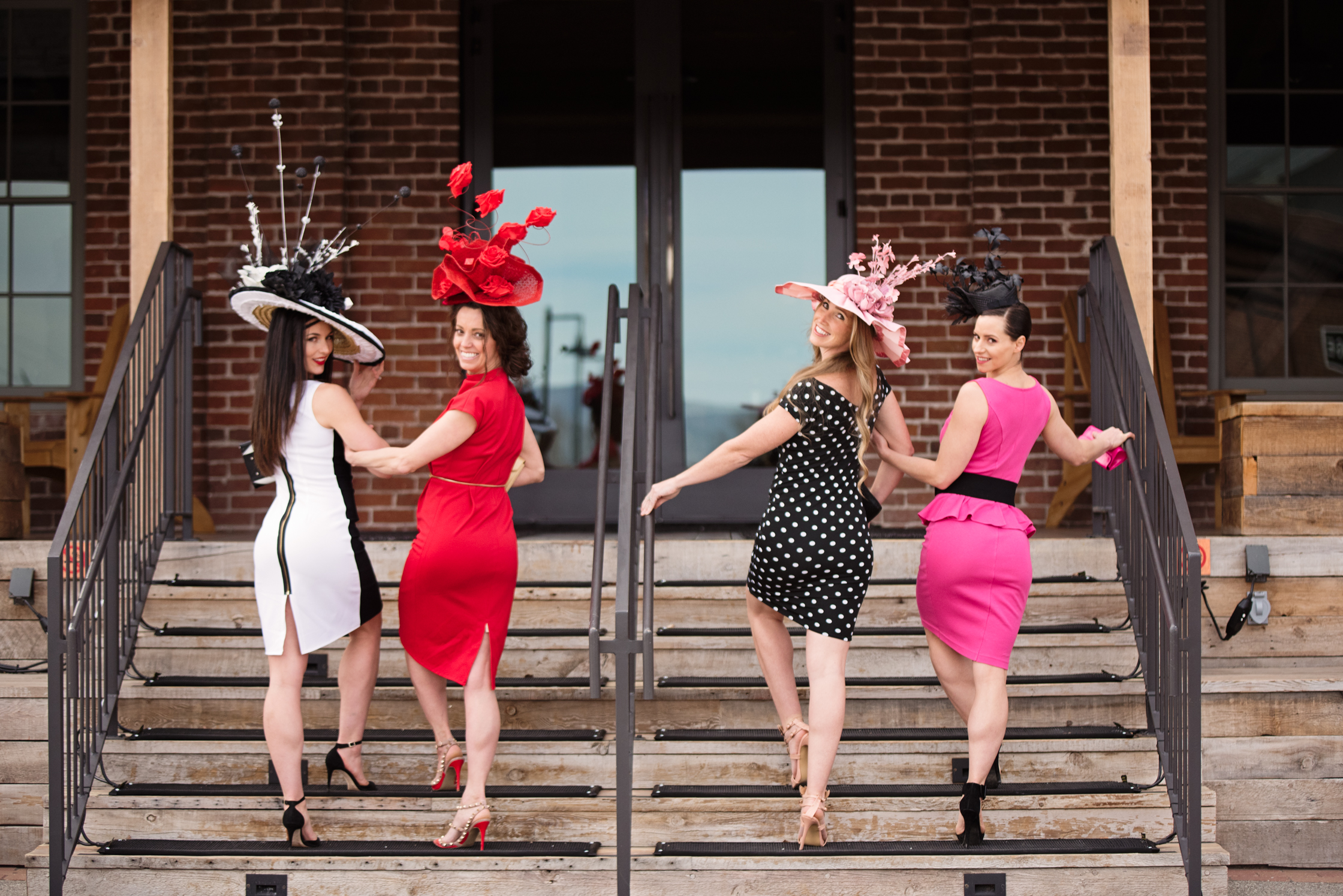 Kentucky Derby Hats— First thought…girlfriends, pretty dresses, heels and BIG beautiful hats… and sweet “Blue” who stole the show 🐎 😄