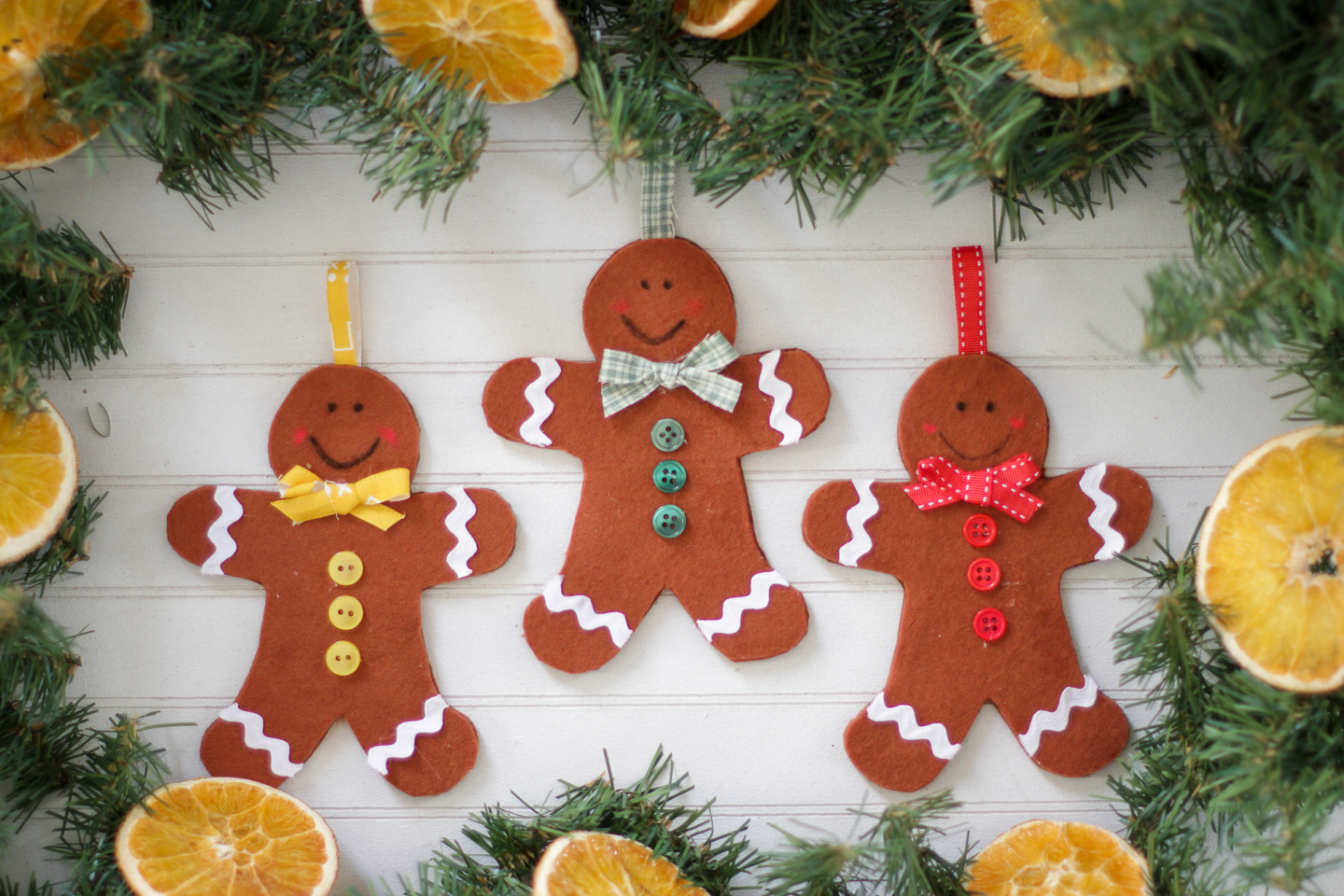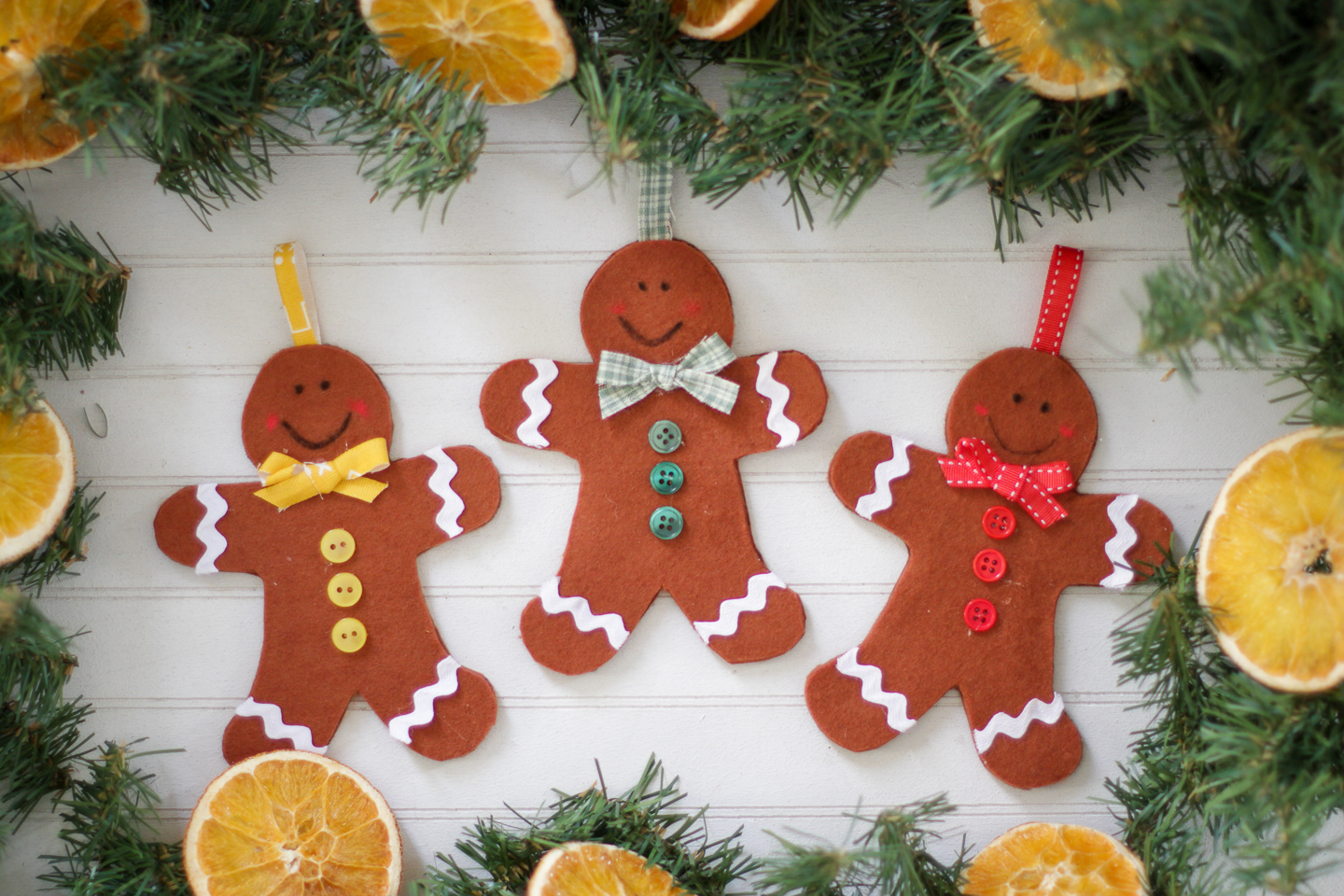 You can bring this story to life and let the kids help with the seasonal decorating by making cute felt gingerbread ornaments that are simple enough to get the whole family involved.