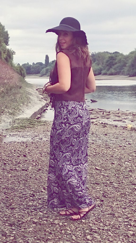 I tried to stay true to the decade with my accessory choices…many from my personal collection …suede boots, suede bag, knit hat with flower, leather belts, gold jewelry, hand-crafted natural jewelry.