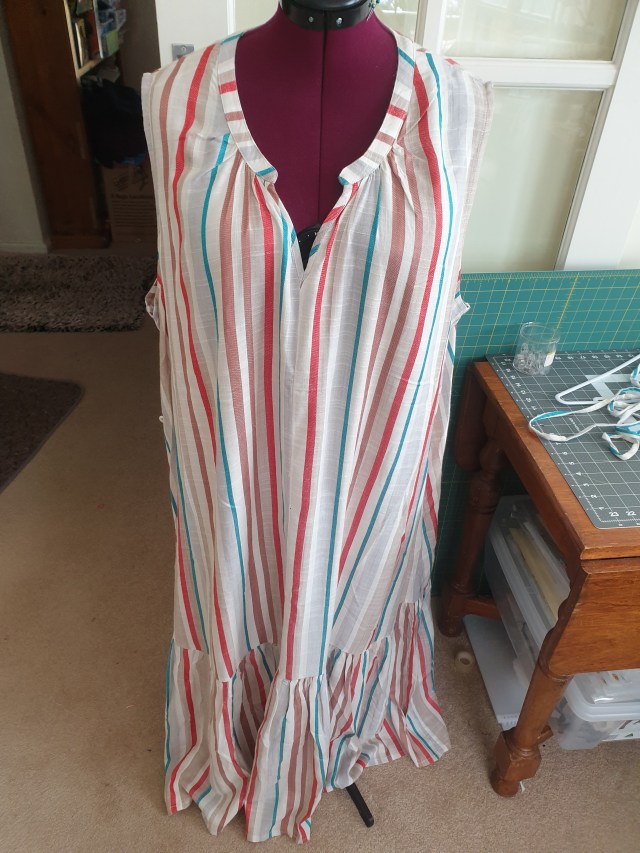 The fabric is too stiff and the style is too shapeless for me, but there’s plenty of opportunity for refashioning! I began by washing and drying the dress a few times to change the fabric’s hand – it’s softer now but still crisp enough for a jacket.